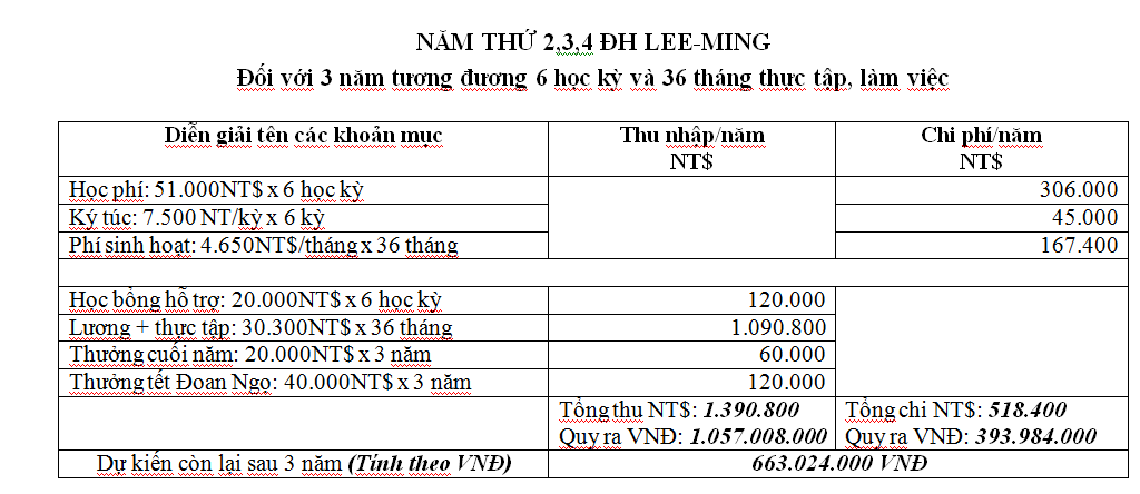 5. Thông tin về dự trù kinh phí đóng góp và ưu đãi:
