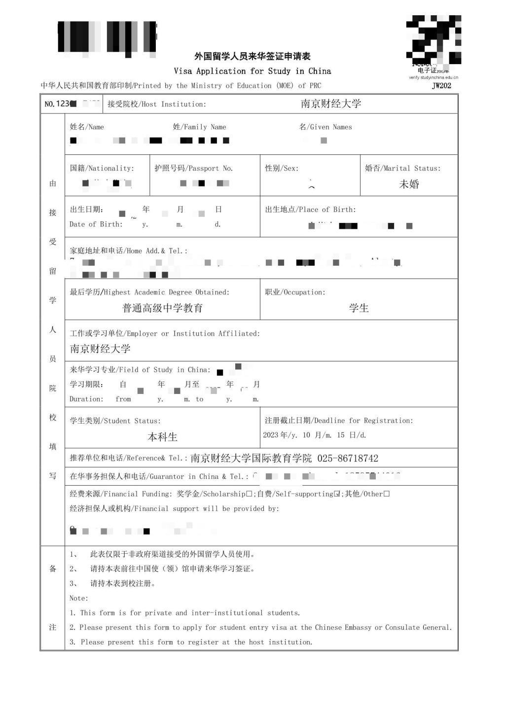 - Đơn đề nghị cấp Visa cho sinh viên nước ngoài đến học tập tại Trung Quốc - JW201/JW202/DQ ("Visa Application for Study in China")