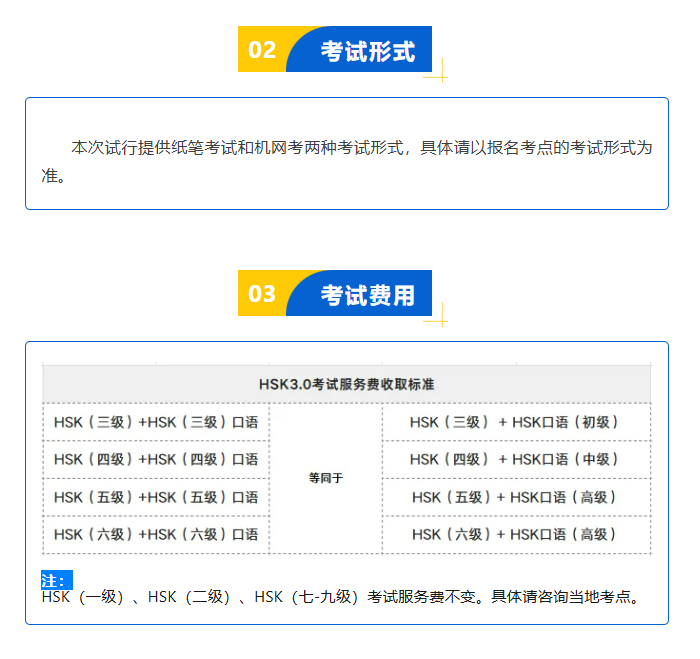 - HSK 1, HSK 2, HSK 7-9 lệ phí sẽ không thay đổi. Thông tin chi tiết tham khảo điểm thi tại từng địa phương