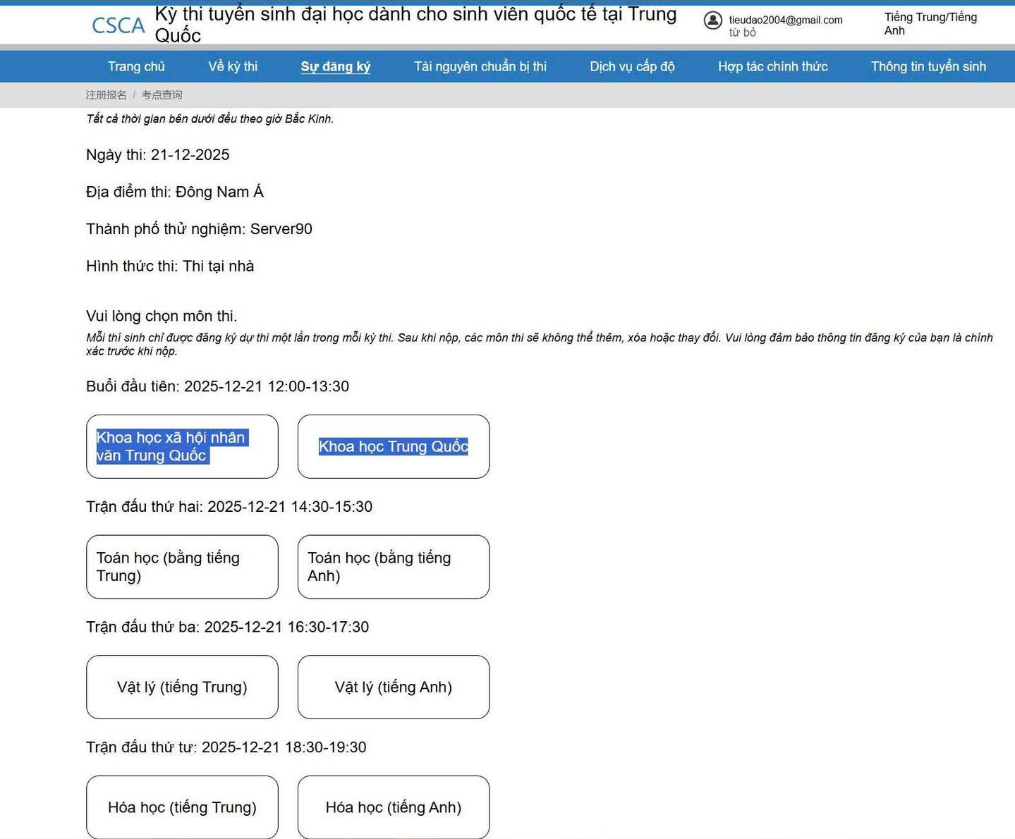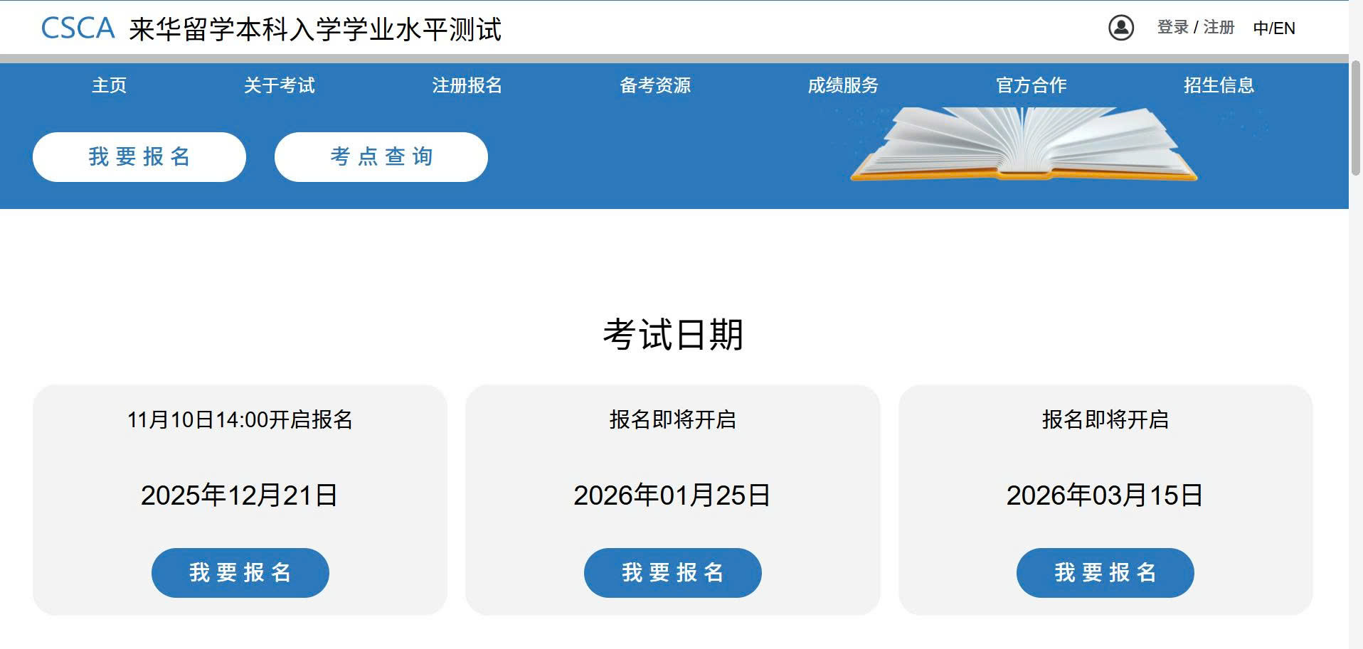 Từ ngày 20/10/2025, sinh viên quốc tế đã có thể truy cập vào hệ thống chính thức của CSCA - Kỳ thi đánh giá năng lực học tập đầu vào cho sinh viên quốc tế apply hệ Đại học tại Trung Quốc. Tại đây, sinh viên có thể cập nhật thông tin mới nhất về kỳ thi cũng nhưcương ôn tập cho các môn thi.
