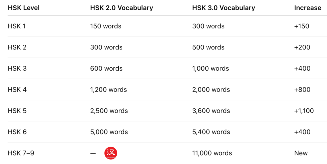 Một trong những thay đổi đáng chú ý nhất trong HSK 3.0 là việc mở rộng yêu cầu về từ vựng ở mọi cấp độ, với sự nhấn mạnh hơn vào việc sử dụng thực tế và sự tiến bộ có hệ thống.